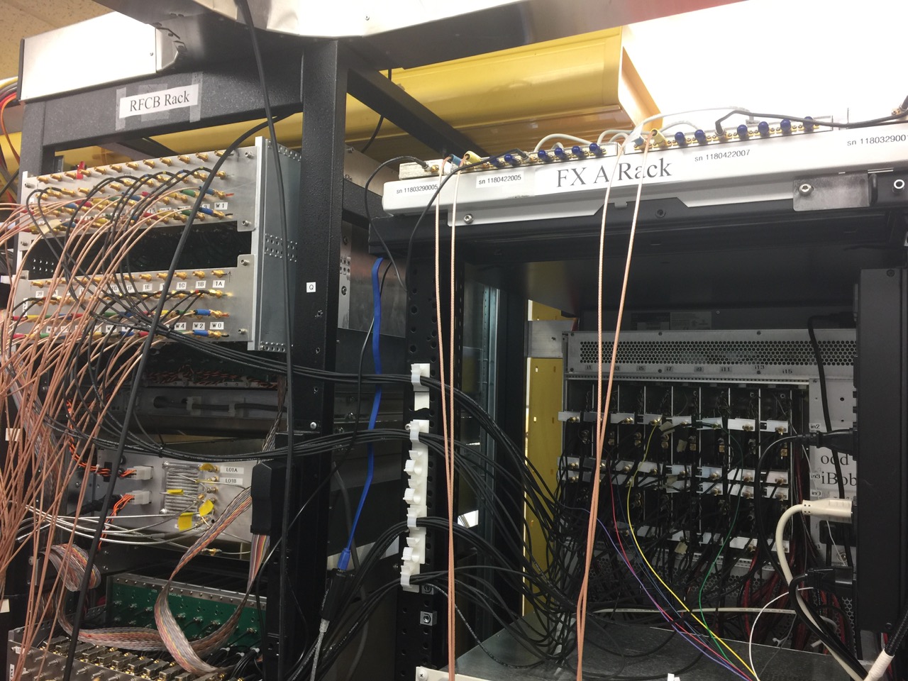 The RF switch and attenuator units are installed at the top of the FXA Rack just to the right of the RFCB rack: